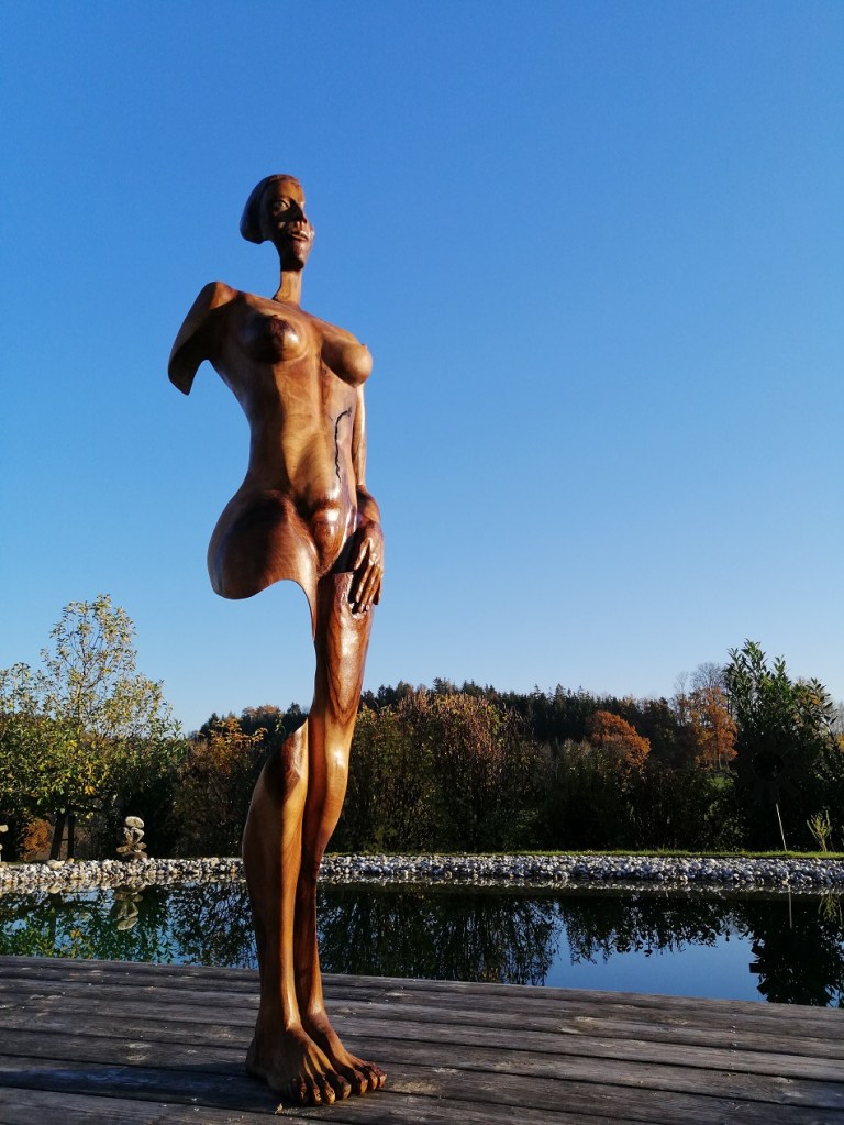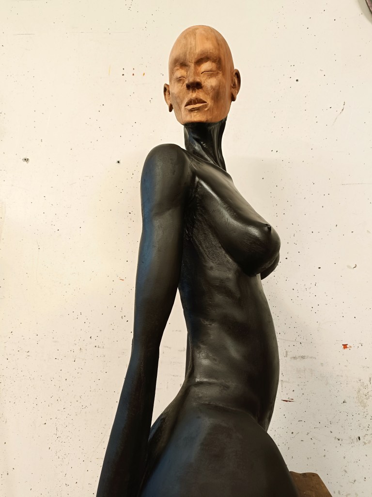 BLACK MAGIC WOMAN – NUSSHOLZ, TEILLACKIERT ca. 1,5 m HÖHE – o VERKAUFT – SOLD