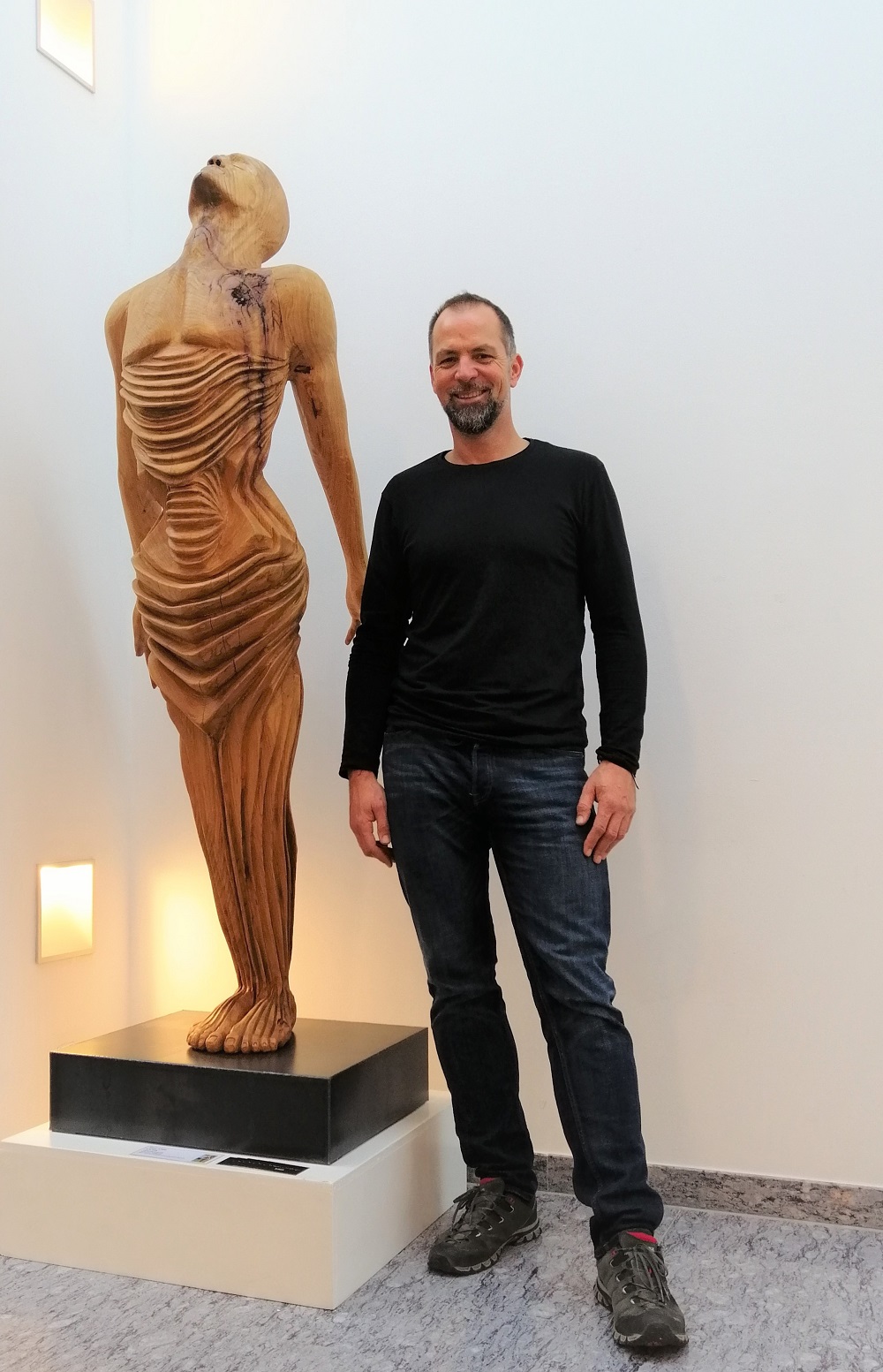 FIND YOUR BALANCE, AUS EINEM STÜCK WALNUSSHOLZ, HÖHE 2,3 METER – o VERKAUFT – SOLD