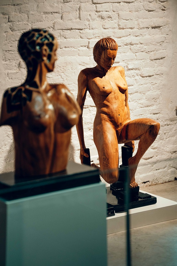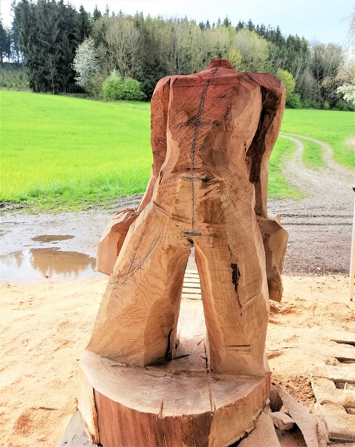 „DANCE“ – AUS EINEM STÜCK EICHENSTAMM; SOCKEL EPOXIDHARZ; HÖHE 1,5 M – VERFÜGBAR