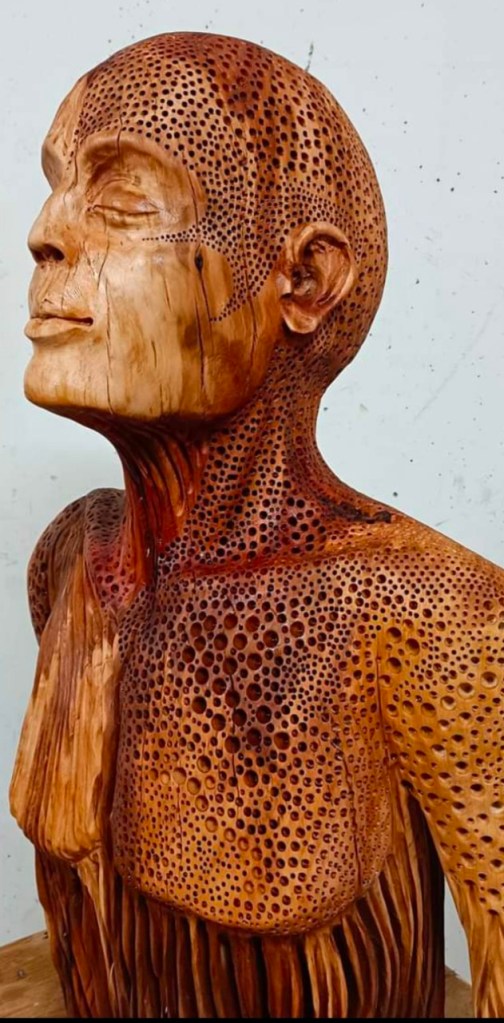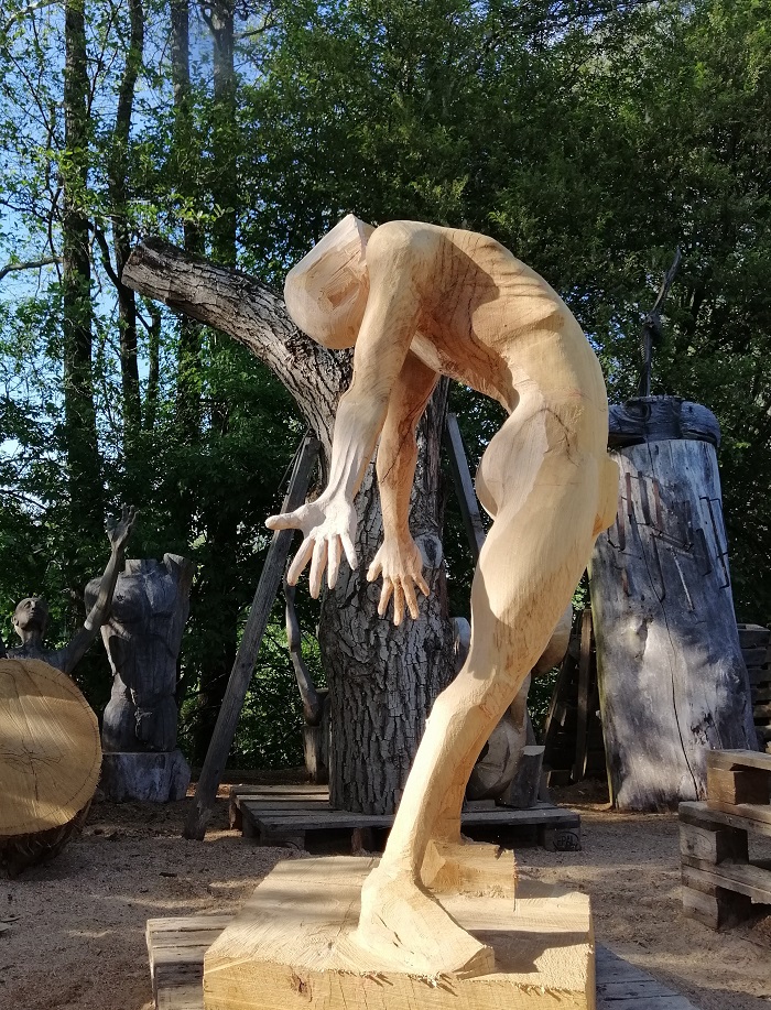 DANCE-BREATHE, AUS EINEM STÜCK EICHENSTAMM GEARBEITET, 1,5 m HÖHE o VERKAUFT – SOLD